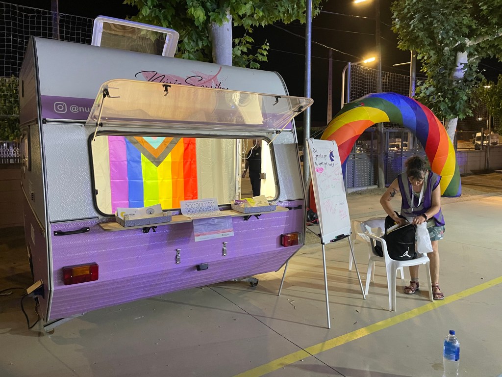 << És un espai d’atenció segur dins la festa on pots fer consultes sobre temes relacionats amb la salut sexual, les drogues , la diversitat sexual i les violències>>